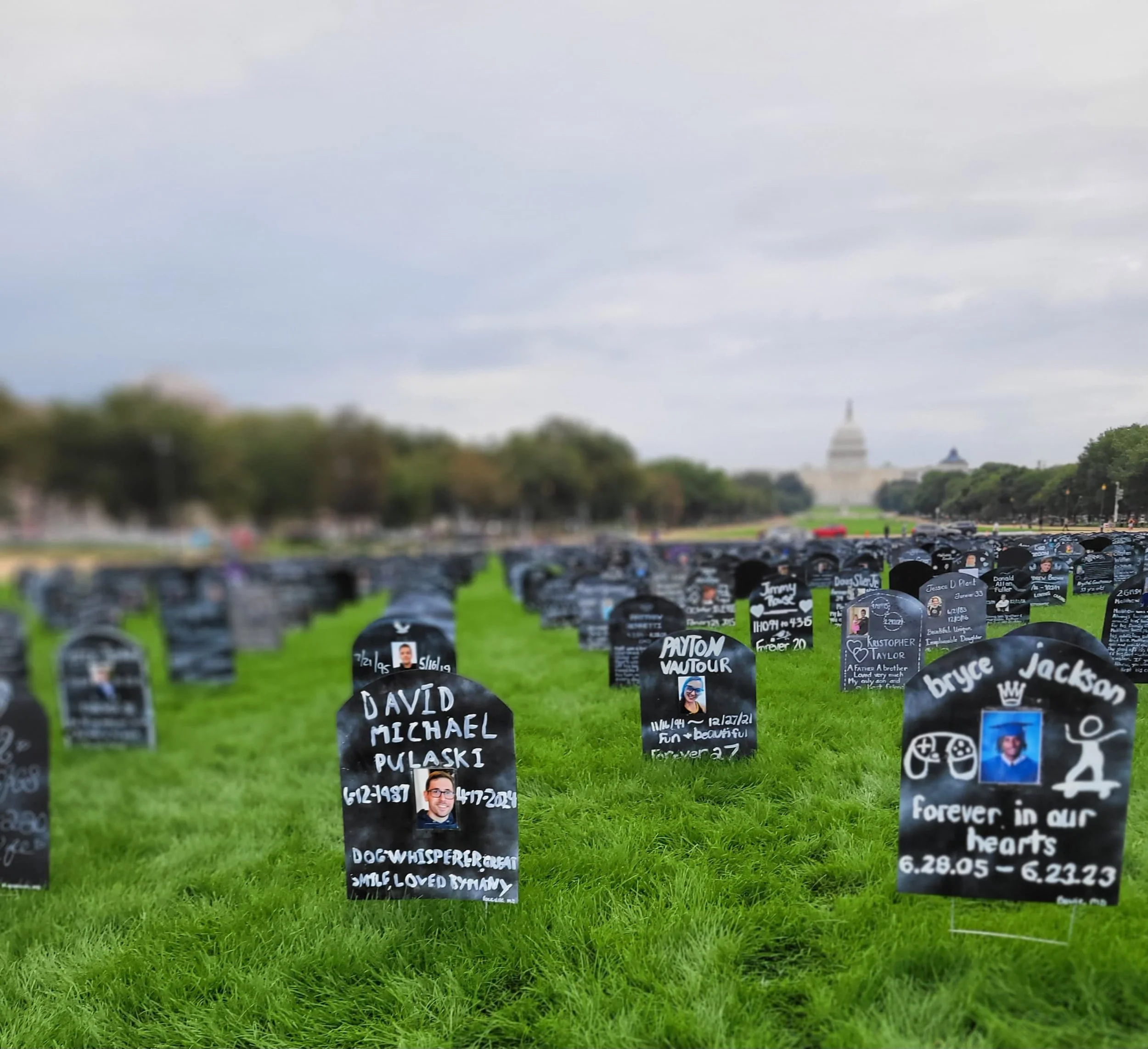 After painting tombstones to honor lives stolen by substance use disorder, Some of our moms from S.O.U.L. went to the National Mall for another “Trail of Truth” event on September 27, 2025. Thousands of hand-painted tombstones are displayed - each one representing a person, a story, and a family.